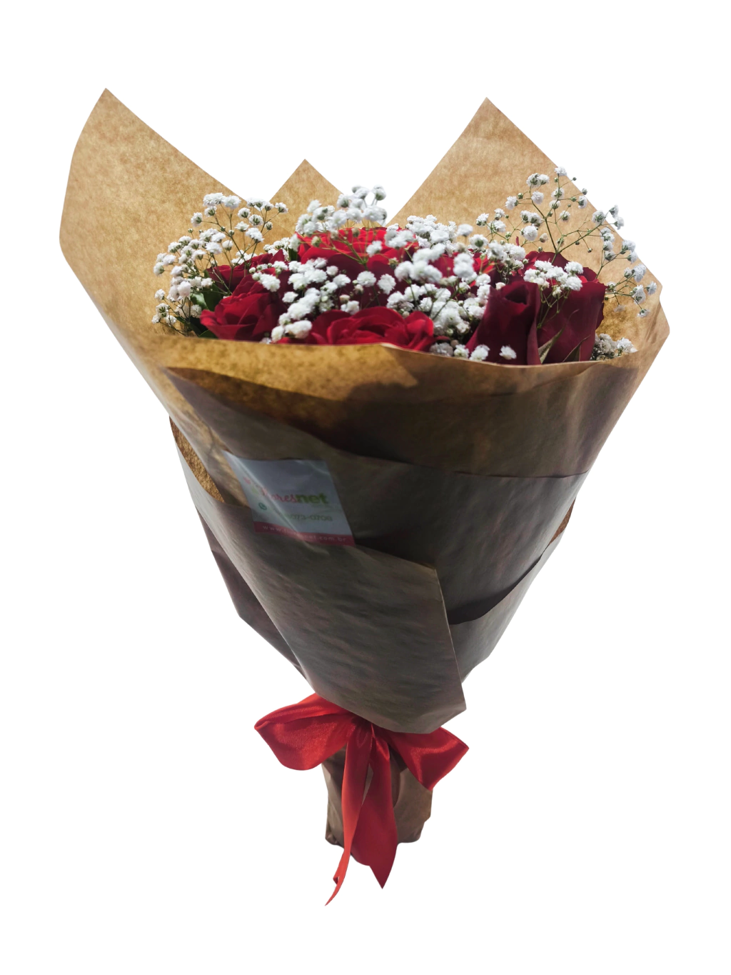 Ramo Clásico de 3 Rosas, Ramo Exclusivo de 6 Rosas y Ramo de Lujo de 12 Rosas. Ramo con Rosas Rojas, Gipsófila y follaje. Envuelto en celofán cristal y atado con cintas de raso.