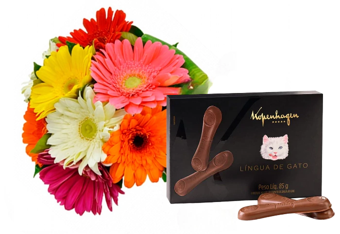 Buquê Lindas Gérberas e Chocolates Lingua de Gato