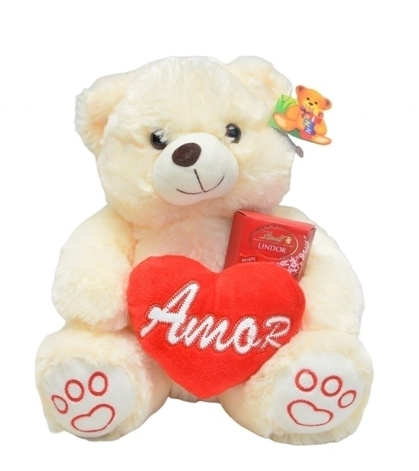 Gorgeous white bear with a "Love" heart and a Lindt chocolates box.